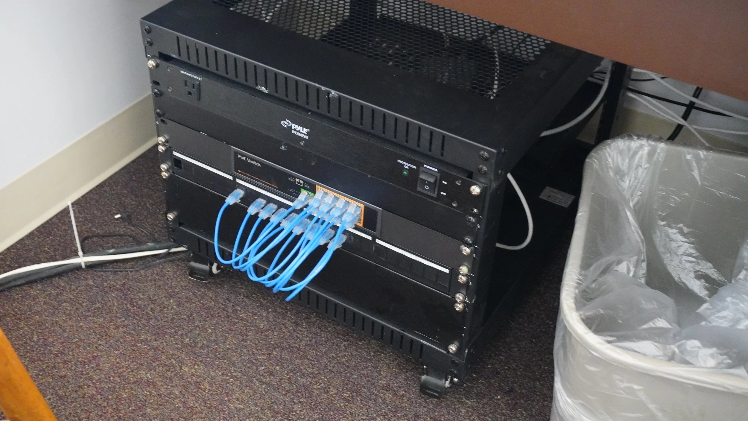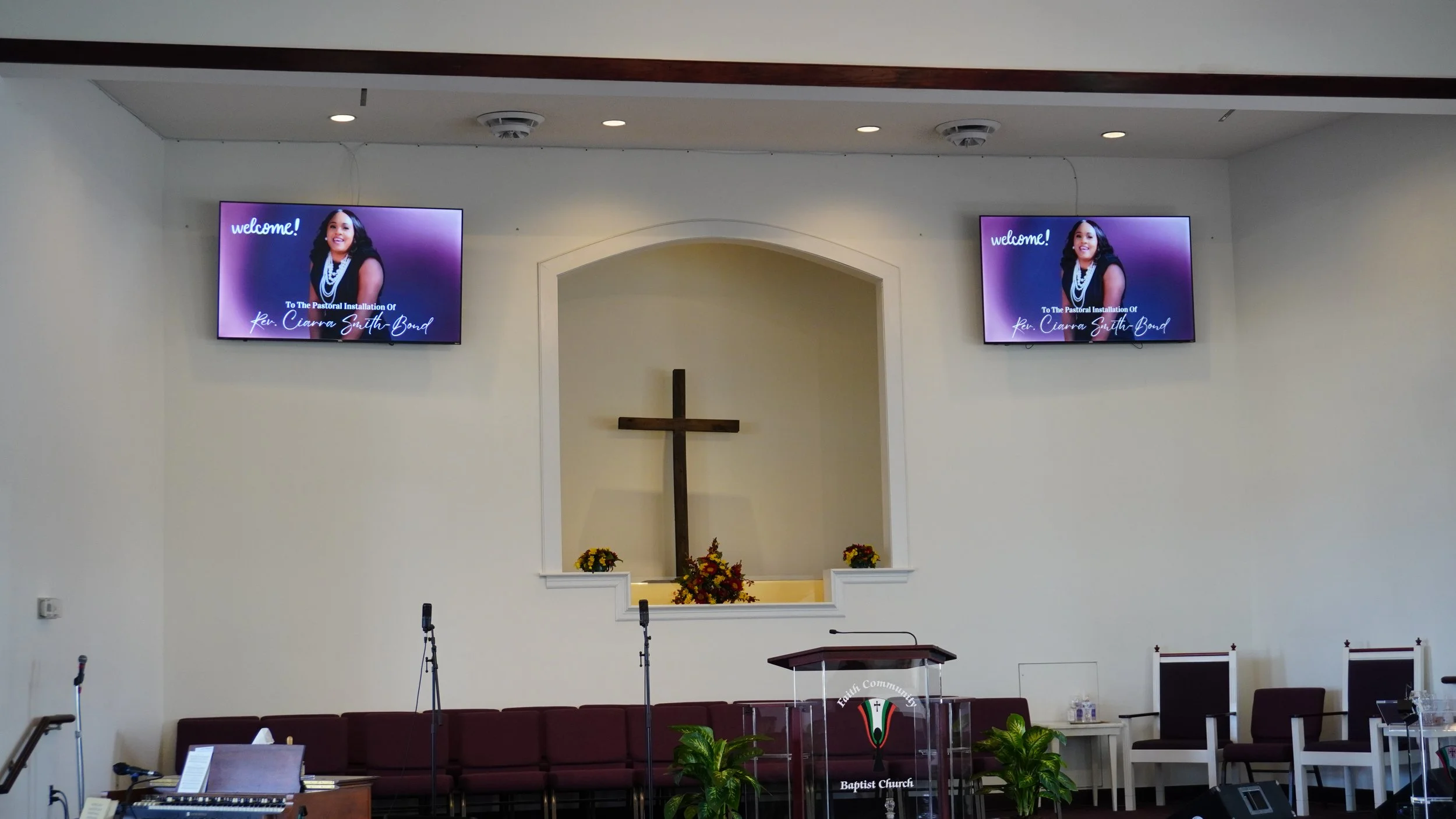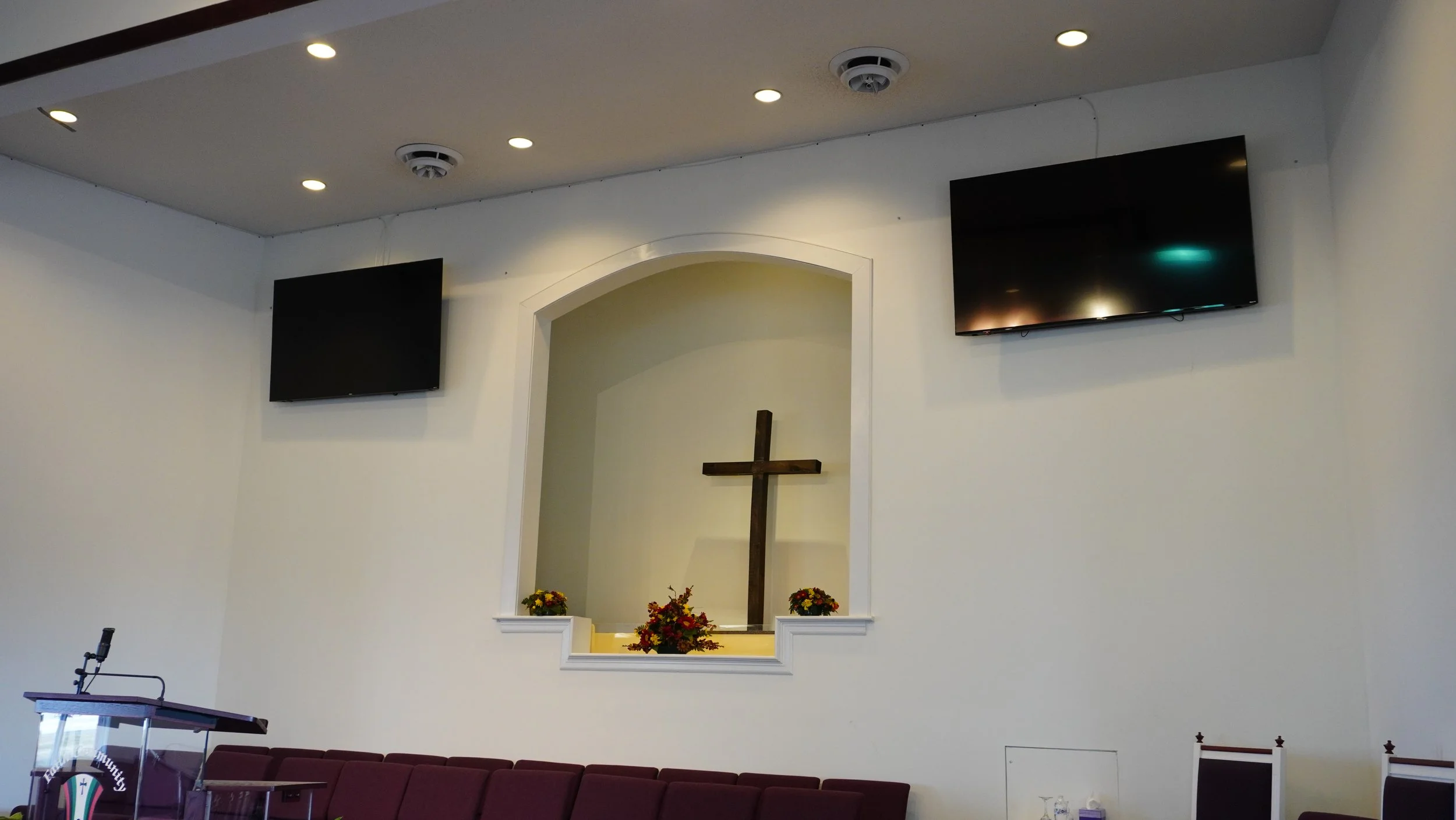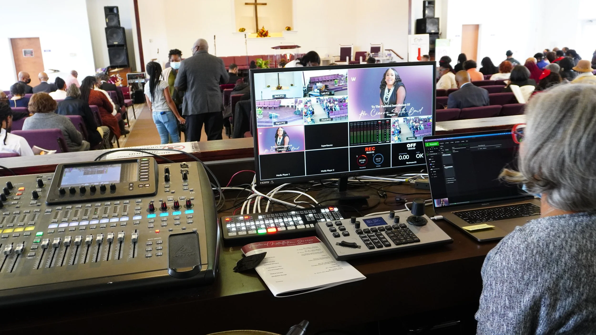We installed the ATEM SDI Extreme ISO, custom 9U AV Rack, 4X 20X PTZ Cameras, SDI video distribution and 3X 75in 4K Televisions.